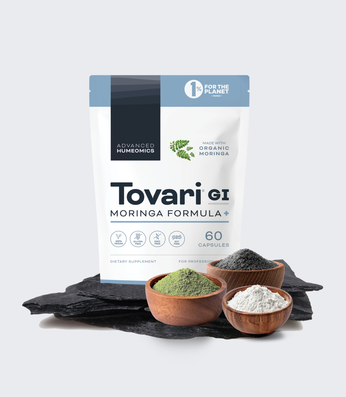 Tovari GI combines the functional benefits of humic acid and organic moringa with l-glutamine to support gut integrity, function, and overall gastrointestinal well-being.
